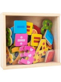 37 letras de madeira revestidas magneticamente em um design colorido e adequado para crianças